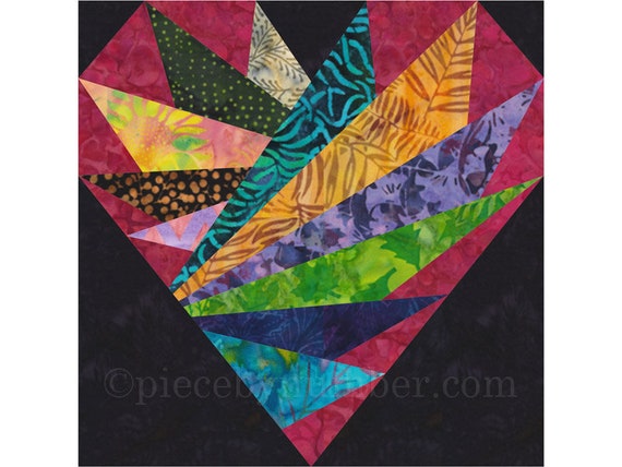 Feathers In My Heart Paper Piecing Quilt Block Pattern Pdf 6 Etsy New Zealand